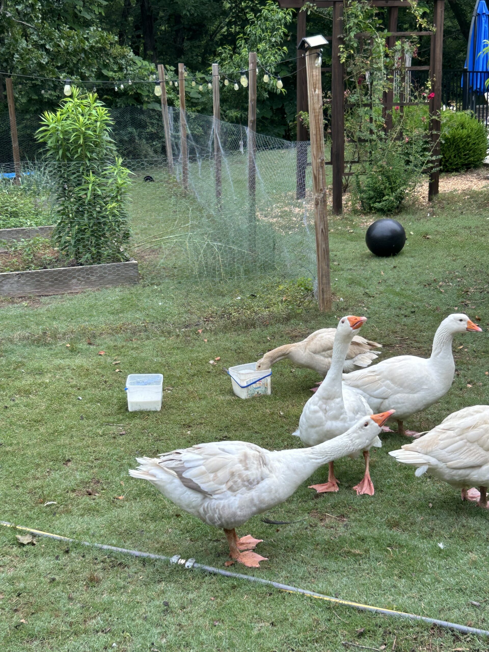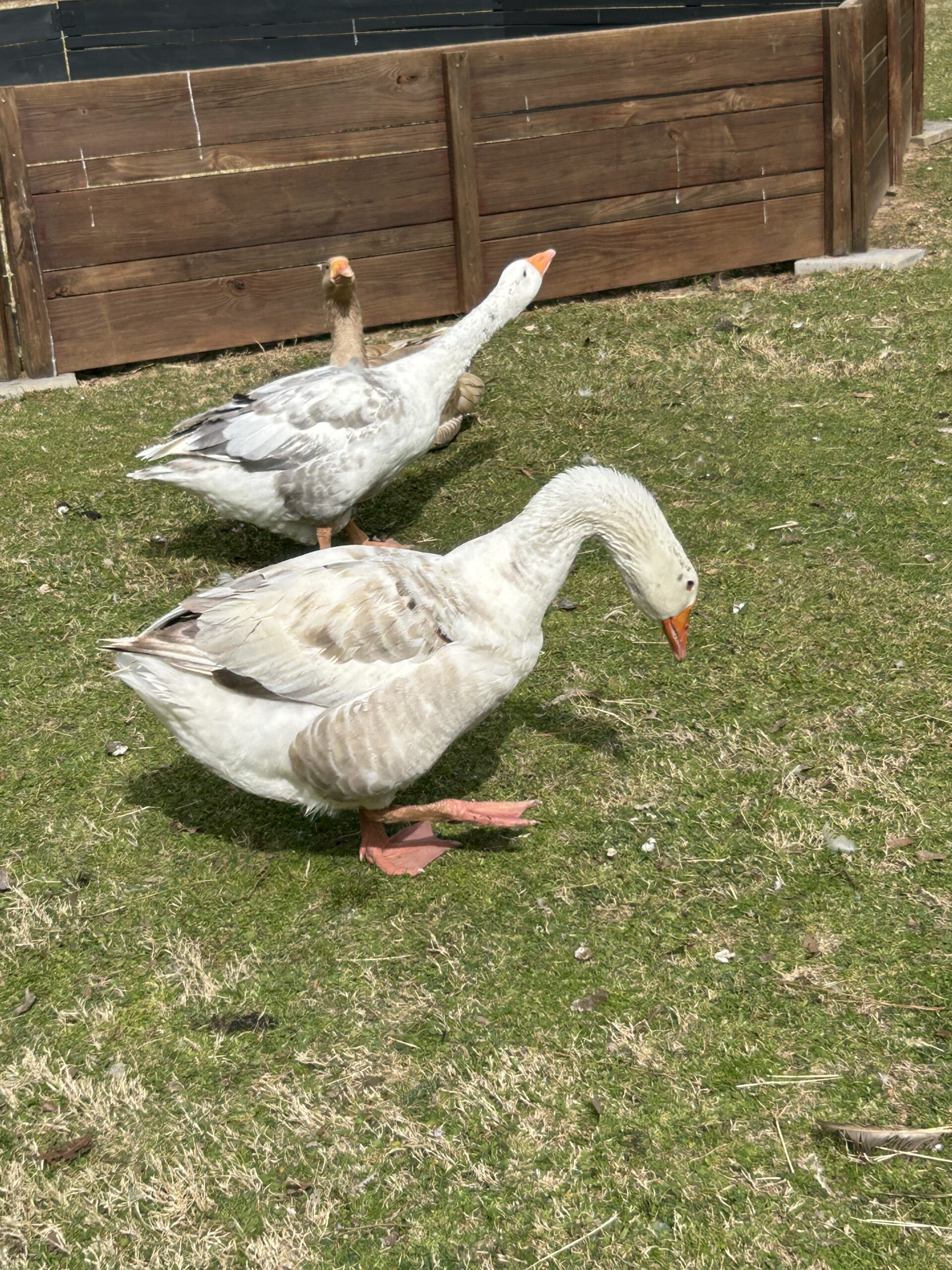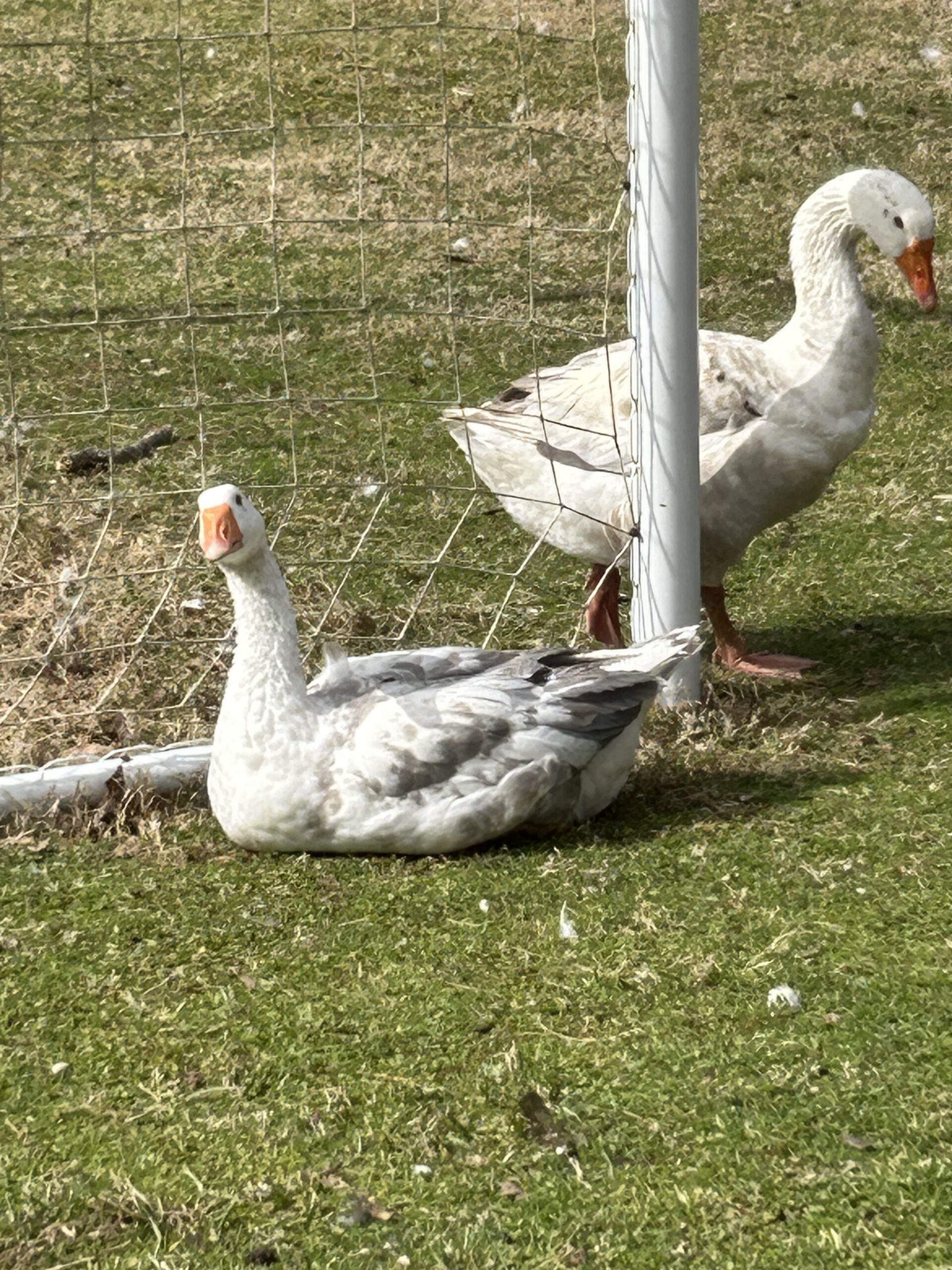 Proven breeding pair of Embden geese, 2023 hatch dates.